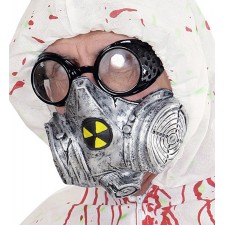 La mascherina anti gas radioattivi e gas tossici è l'accessorio perfetto per completare il travestimento da terribile killer scienziato pazzo, laboratorio della paura in occasione di Halloween e altre feste a tema horror.