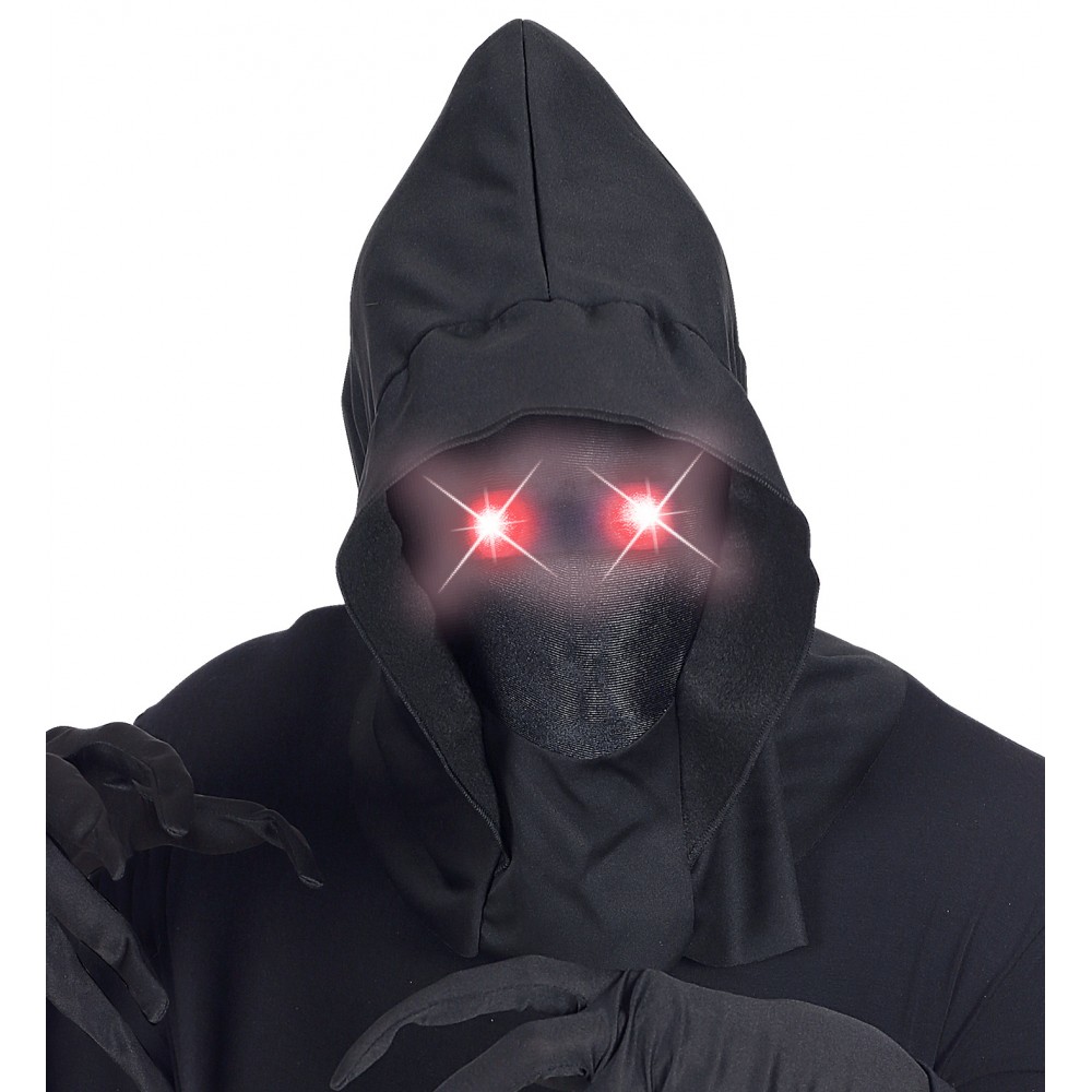 Maschera Nera a viso coperto con cappuccio e occhi luminosi rossi, Taglia Unica