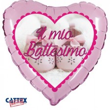 Il palloncino a forma di cuore con stampa "il mio battesimo" e scarpette da neonata ,bimba è adatto per decorare e allestire la tua festa ,cerimonia religiosa di Battesimo