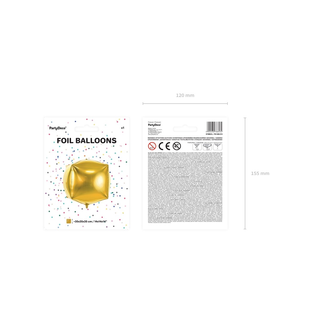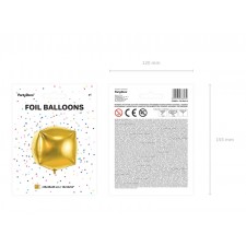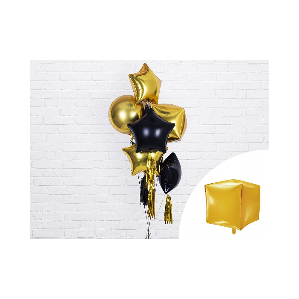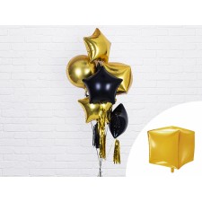 Elegantissimo foil balloon dorato dalla forma cubica, perfetto per qualsiasi festa o cerimonia, matrimonio, compleanno, battesimo, baby shower, comunione, cresima, capodanno, party aziendali, promozioni, occasioni speciali ed eventi.