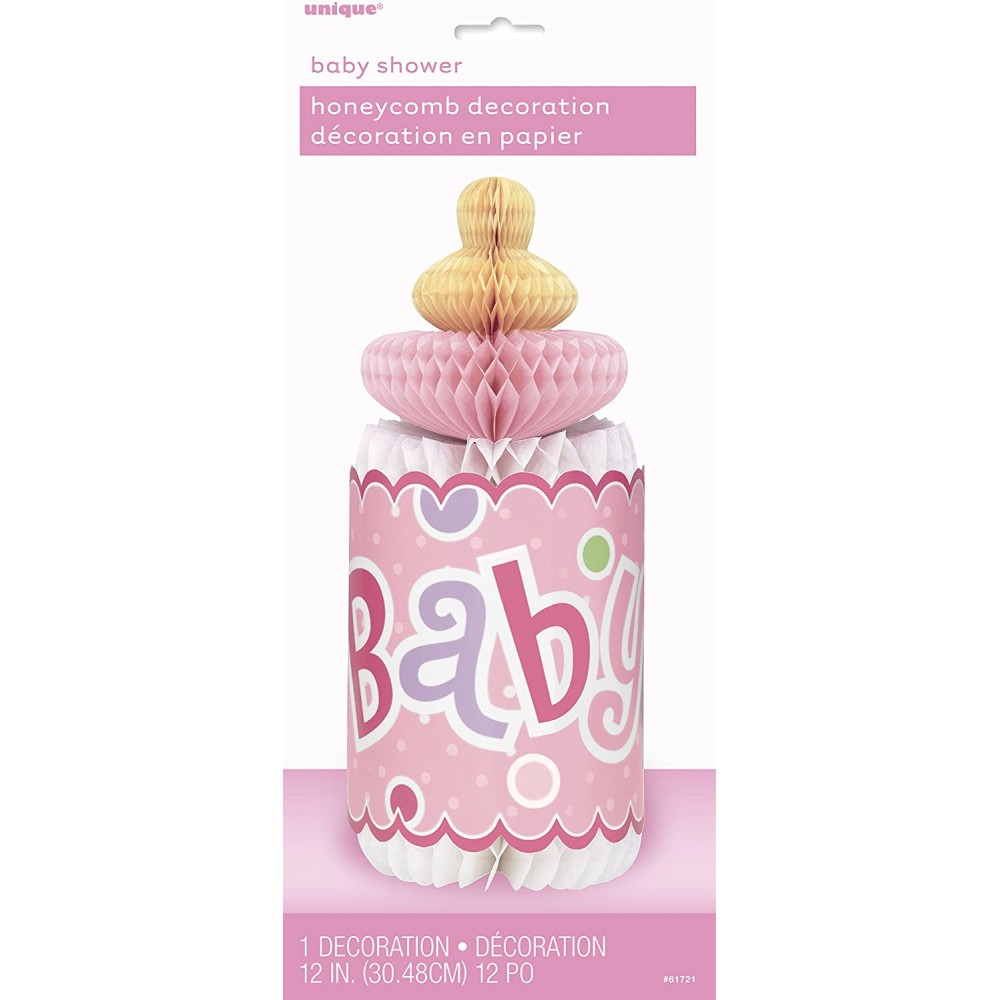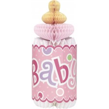 Centrotavola biberon a Nido d'Ape "Baby Shower" Bimba - Rosa