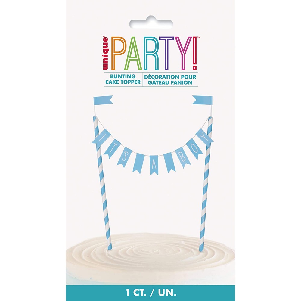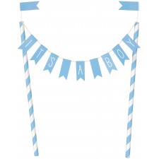 Stai pensando all'organizzazione del tuo Baby Shower e non sai come completare le decorazioni dei dolci che hai preparato? Questo topper farà al caso tuo, sarà perfetto sia sopra a una torta ma anche sopra a qualsiasi tipo di dolcetto (Cupcakes etc..), l'articolo si presenta con uno striscione che cita "It's a Boy" sostenuto da due paletti di colore Azzurro e Bianco a striscie. Perfetto accessorio da implementare al tuo evento in vista della nascita di un bimbo.