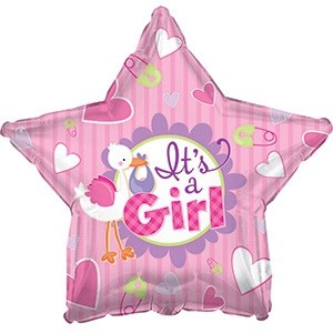 Rosone rosa con Cicogna e Bebè perfetto per decorazioni per la Nascita e Baby Shower.