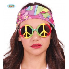 Occhiali da Hippie Figlio Dei Fiori Con Simbolo Pace Multicolor