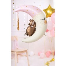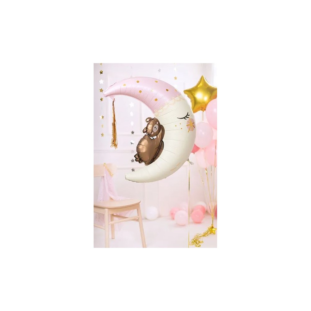 Questo palloncino foil balloon a forma di mezza luna e un orsetto è l'accessorio perfetto per party di benvenuto, Nascita o Baby Shower, battesimo. Caratterizzato da un meraviglioso e brillantissimo effetto oro grazie alla nappa applicata in punta, ti farà fare un figurone con i tuoi invitati!