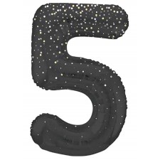 Palloncino Foil Numero 5, Cinque,Nero Brillantinato, 86 cm