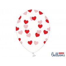 Palloncini trasparenti in lattice con stampa cuori rossi San Valentinocf da 6
