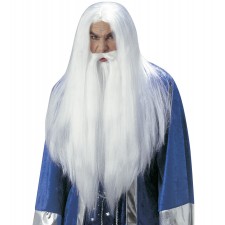 Parrucca da Mago con Maxi Barba e Baffi, Lunga Bianca, Uomo Adulto