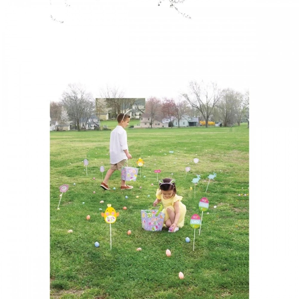 Aiutate tutti a trovare la strada con i nostri cartelli indizi di caccia all'uovo di Pasqua. Questi cartelli da giardino a caccia di uova di Pasqua rendono facile per i bambini di tutte le età di godersi il vostro evento. I cartelli presentano frasi divertenti e direzioni come: "Seguimi", "Da questa parte" e "Quasi lì". Utilizzare i loro bastoncini attaccati per fissarli nel terreno. Porta più stile alla tua festa primaverile e acquista il resto delle nostre forniture per feste di Pasqua.