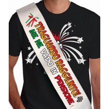 Ottima idea quella di celebrare un giorno così importante come il Pensionamento attraverso qualche gadget umoristico, grazie a questa fascia, potrete mettere in evidenza chi ha raggiunto questo traguardo, semplicemente facendogli indossare questa Fascia Premio con stampata la scritta "Traguardo raggiunto, me ne vado in pensione!". Ideale per uomo e donna, l'accessorio sarà perfetto per una festa tra colleghi, amici e famigliari.