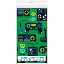 Tovaglia di compleanno in plastica da gamer! Questa tovaglia di plastica di 2,13 x 1,37 metri presenta una vasta gamma di console di gioco e controller, perfetti per la tua festa di compleanno a tema videogiochi. Quando la festa è finita, butta via semplicemente il copritavolo usa e getta per una rapida pulizia.