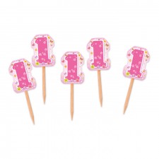Stuzzicadenti / picks Rosa per il 1° Primo Compleanno per Bambina 25 pz