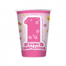 Bicchieri 1° Primo Compleanno Rosa Bimba Numero 1 Festa Coordinati Bambina Cartoncino - Conf. 8