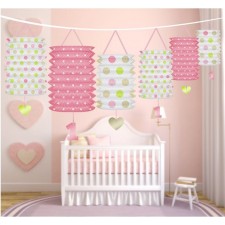 Ghirlanda Lanterne festone Primo Compleanno Striscione Rosa Bambina