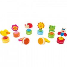 simpatici timbrini colorati in legno con soggetti assortiti animali con molla