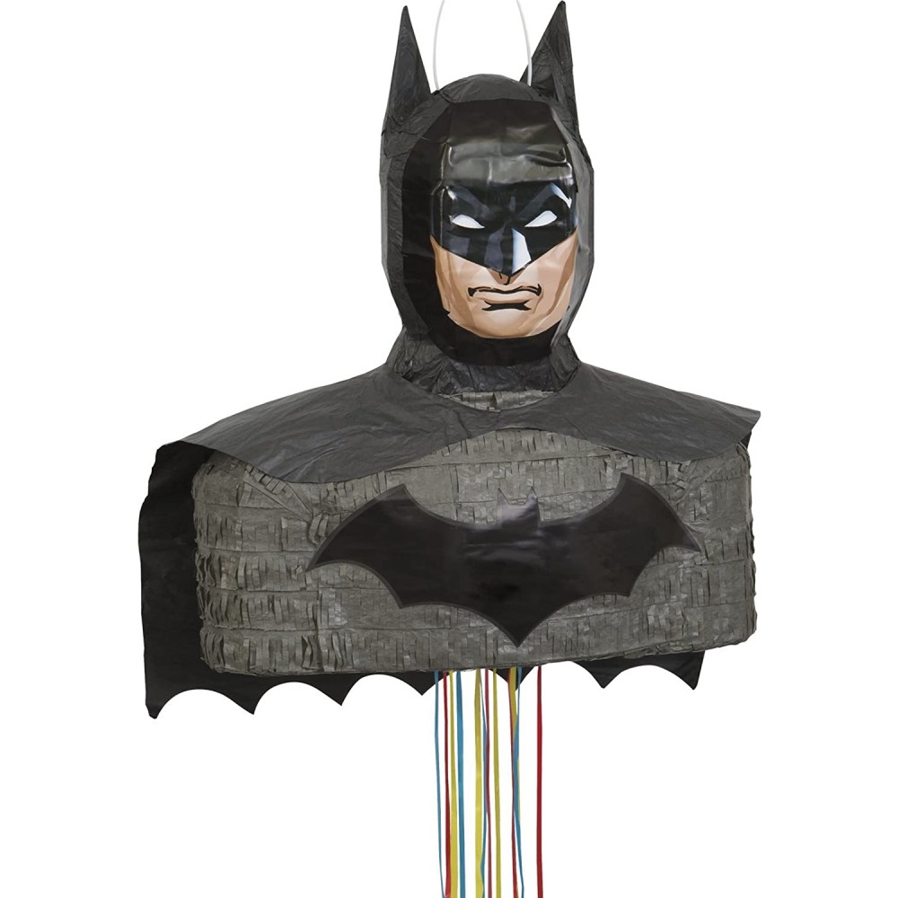 Una pignatta di Batman in licenza ufficiale, rappresenta il busto del super eroe. Un comodo anello é presente nella parte superiore per appenderla, mentre nella parte inferiore ci sono delle cordicelle da tirare, una soltanto aprirà la pignatta. Riempi con tutte le caramelle che vuoi la pignatta e scatena il divertimento dei bambini invitati al compleanno dei piccoli fans di Batman!