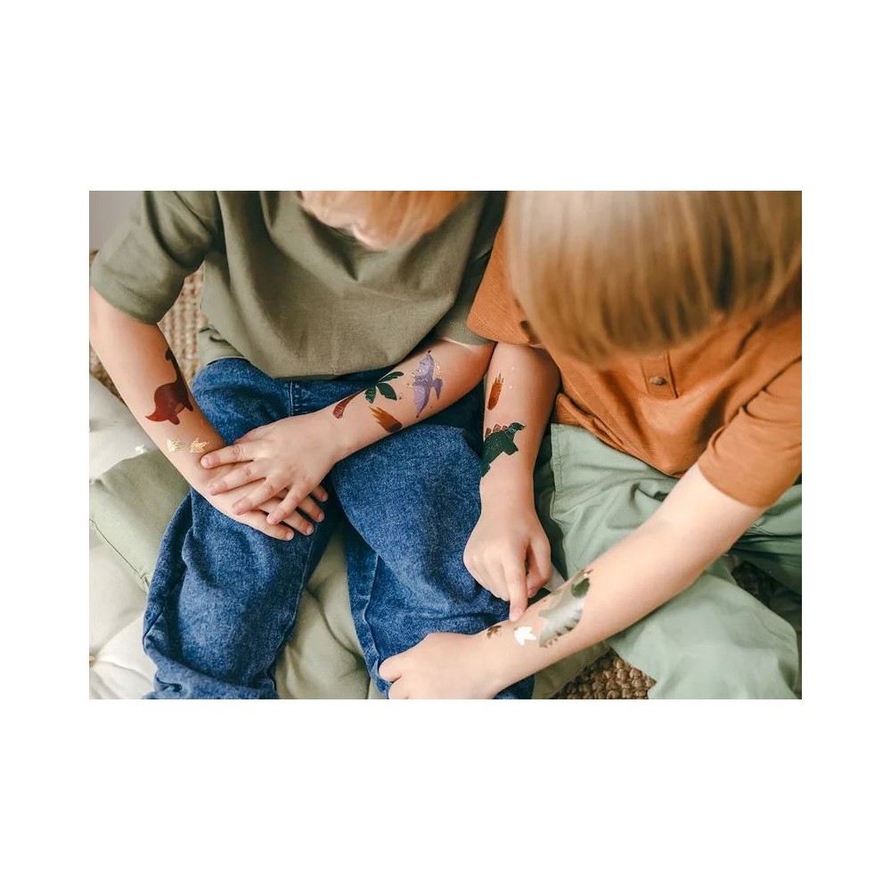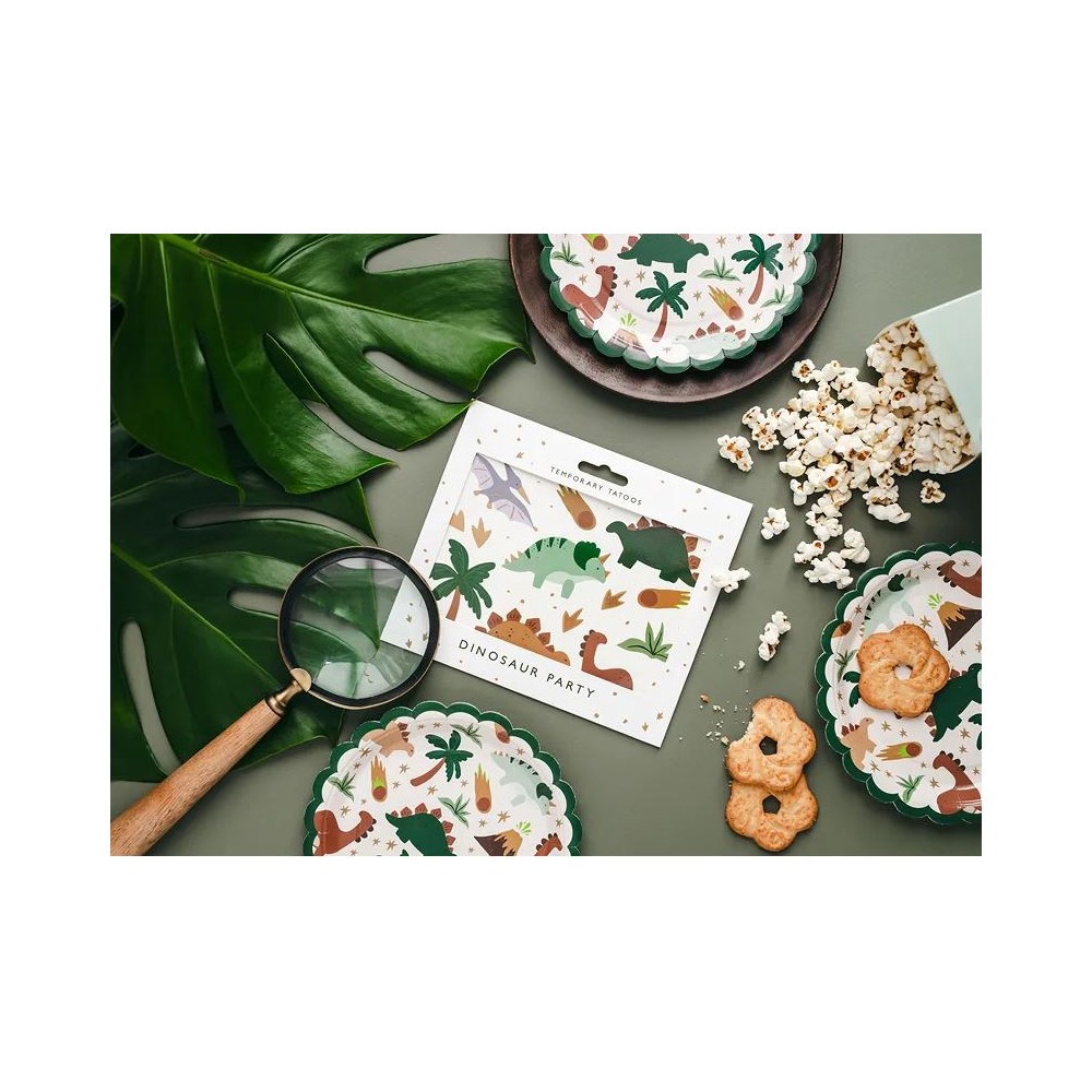 Ottima decorazione facilmente utilizzabile grazie al solo aiuto di un po' d'acqua. Questi splendidi tatuaggi andranno a decorare le vostre braccia e il vostro corpo, specie in occasione di una festa a tema, i tattoos infatti, si presentano in differenti modelli e disegni a tema preistoria con simpatici dinosauri.