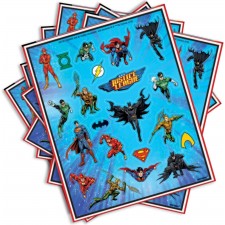 Fogli di Adesivi/Stickers Justice League, per Feste a Tema, 4 pz.