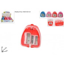 espositore 24 temperini, temperamatite, in plastica, con 3 fori, e serbatoio.