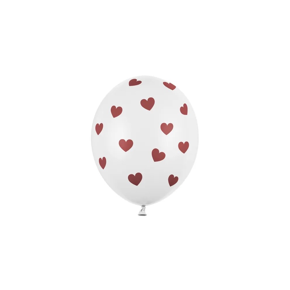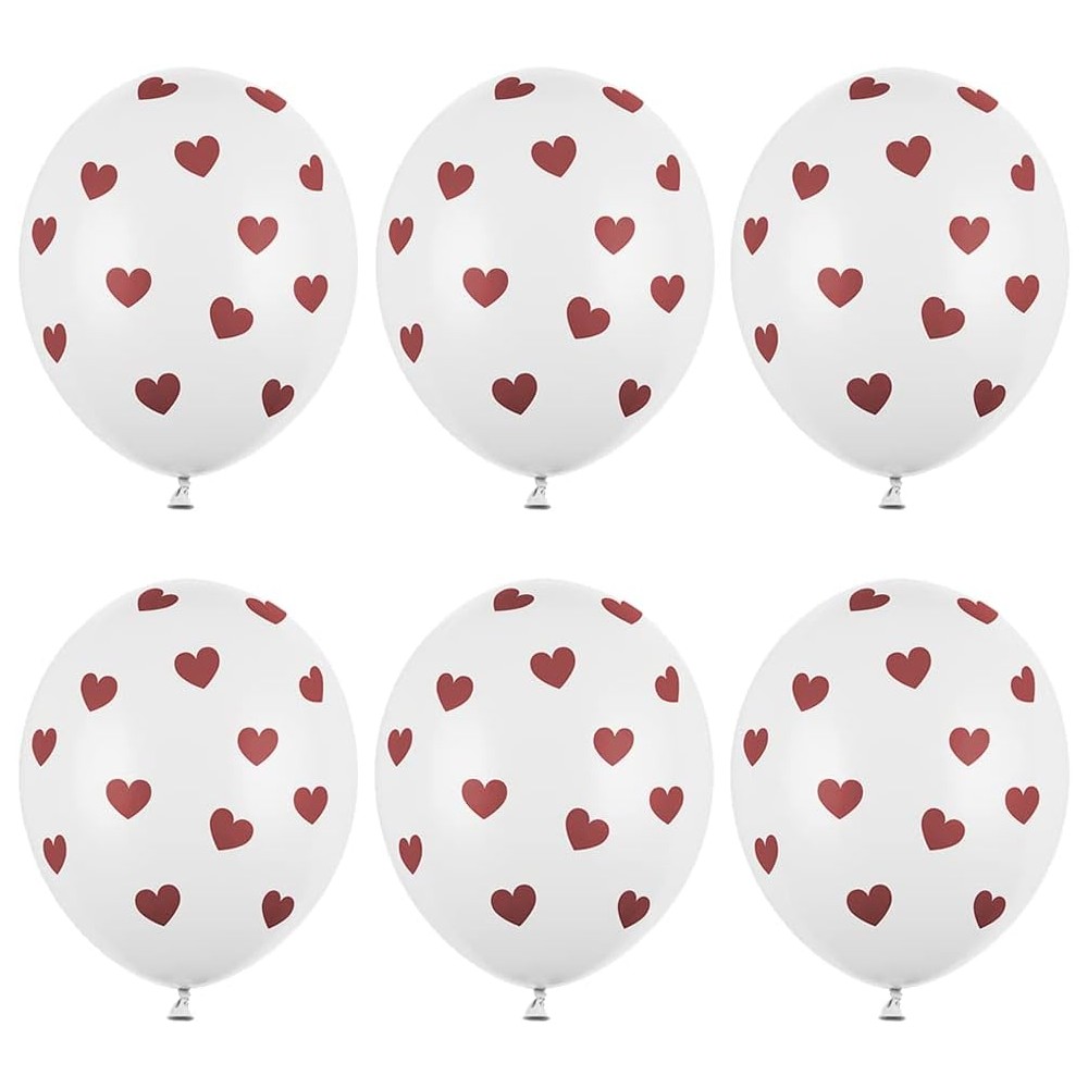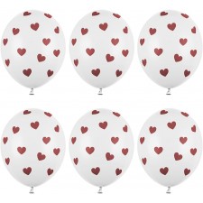 Palloncini Bianchi con Cuoricini Rossi in Lattice, 30 cm diametro, Cf. 6