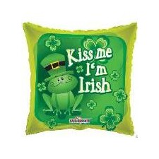 Palloncino quadrato in Foil con rana e scritta in inglese:"Kiss me I'm Irish". 45cm, verde