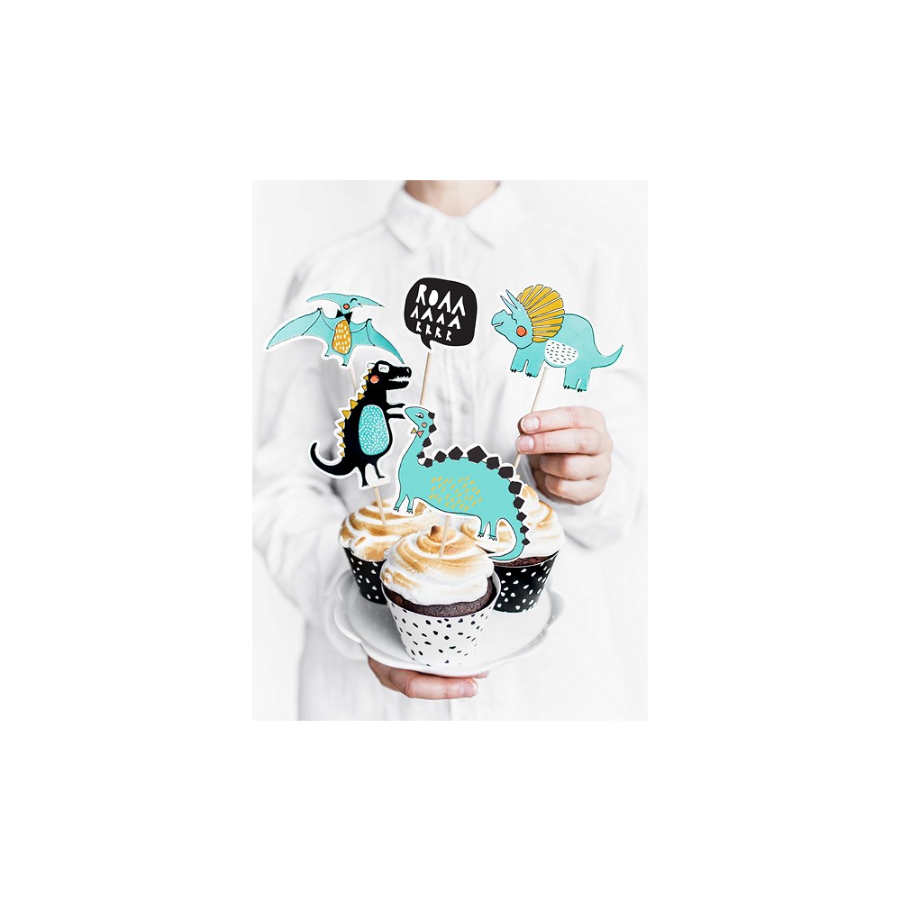 Conf. 6 cake topper pick per torta dinosauri