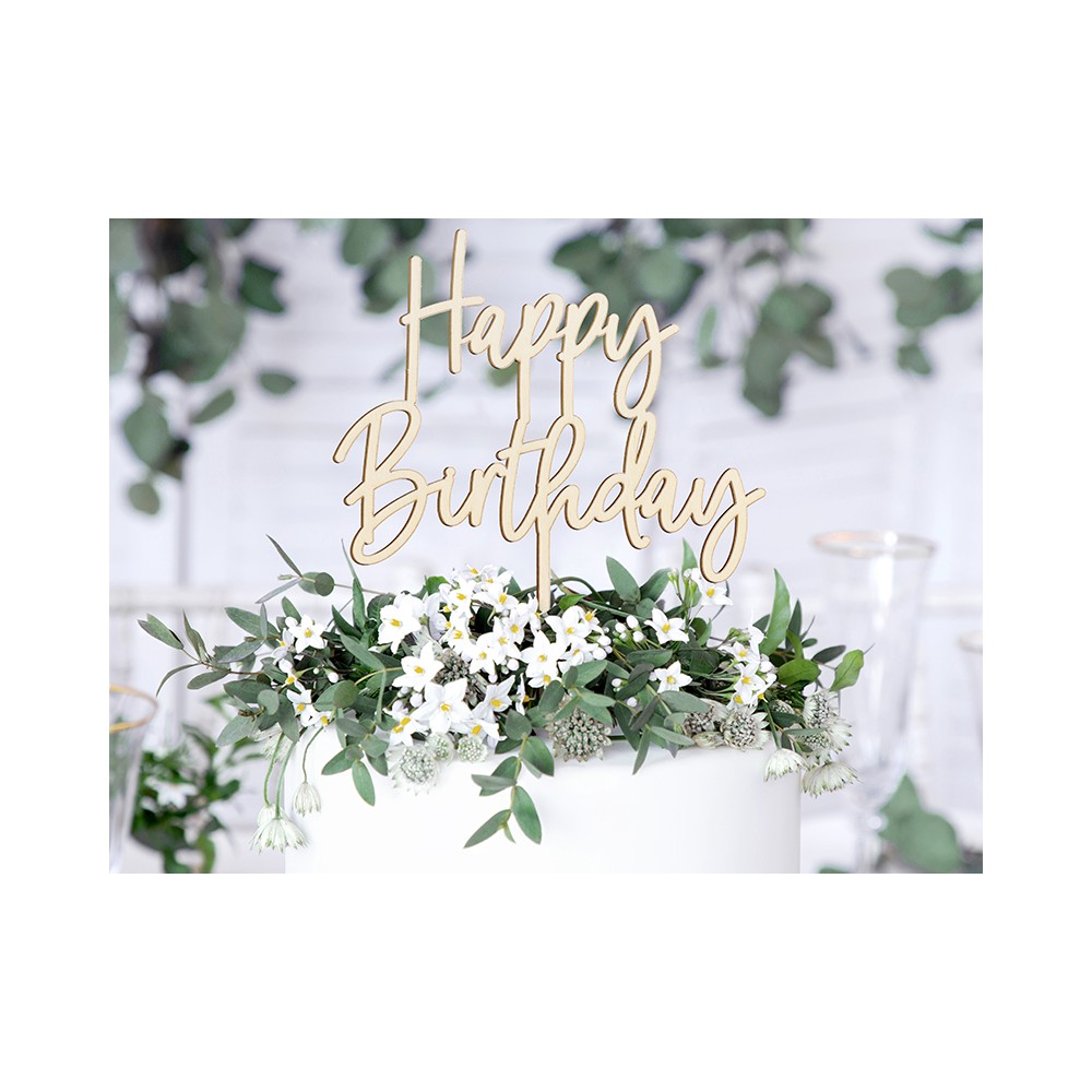 Pick torta Happy Birthday in Legnodecorazione torte compleanno