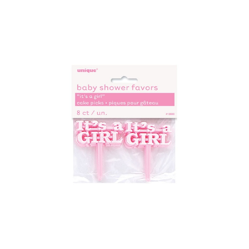 confezione da 8 pezzi picks decorazini torta rosa in plastica muffin cupcake nascita baby shower bimba