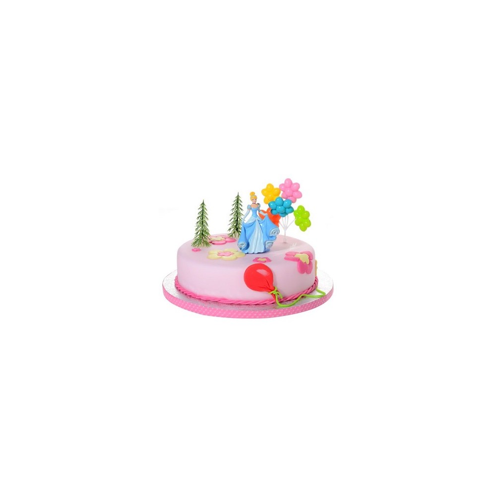 Splendido kit in plastica per decorare la propria torta di compleanno e i propri dolci attraverso un completo Disney raffigurante Cenerentola che farà impazzire il festeggiato e i bambini presenti alla festa di compleanno o festa a tema. Ideale per un evento di questo tipo, il kit comprende 4 pezzi totali, tra i quali, la Principessa Disney Cenerentola, la vegetazione e diversi palloncini colorati.