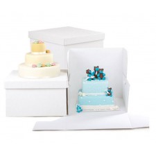 Scatola con coperchio in cannete’ bianco per alimenti per trasportare torte alte a piani .Utili e pratiche, ideali per trasportare torte in tutta sicurezza. La parte interna in kraft ondulato garantisce un buon isolamento termico. La comoda apertura laterale permette di inserire la torta senza rischiare la rottura. Imbustate singolarmente.